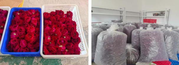 在半坡乡高井槽村墨红玫瑰种植基地,连片花田紫红相间、芳香四溢,花农们背挎竹箩,娴熟地采摘饱满盛开的花朵。基地内,工人们正将新采的鲜花分拣、装筐,及时送入冷库预冷保鲜。“我们基地88亩墨红玫瑰从2月上旬进入采摘期,眼下正是产花旺季,每天要采两轮,趁晴好天气加紧采收,确保花形完整、香气浓郁。”基地负责人李少林介绍,今年花期气候适宜,花蕾饱满、色泽艳丽,鲜花产量和品质均好于往年。