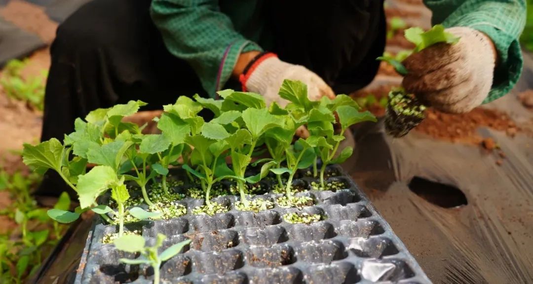 近日,记者走进大棚蔬菜种植基地走访时看到黄春菡组织10余名村民在大棚里忙于定植瓜苗。“这种网纹瓜产量大,耐储运,甜度高,可达18度以上;亩产3吨,网纹瓜6.4元/公斤,今年打算发展50亩,其余30亩继续种植蔬菜。去掉成本,仅发展网纹瓜的年净收益就达260000元。”黄春菡告诉记者说,网纹瓜的生长周期短,只有3个月,8月份网纹瓜收获后,不影响二茬秋白菜、萝卜、胡萝卜、香菜等生育期短的蔬菜多元化复种,实现一年两种、一茬保供给、一茬促增收。”