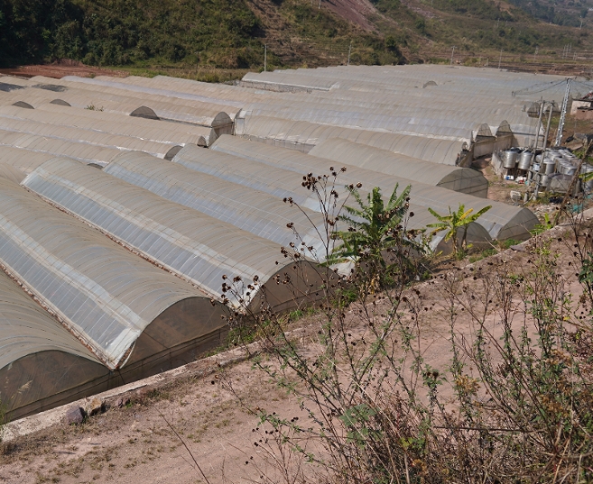 牛孔镇龙洞大棚蔬菜种植示范基地建立于2020年1月,经营主体为绿春县恒昌农业发展有限公司,目前已示范发展现代化、规范化、生态化大棚蔬菜80亩,是目前绿春县面积最大的大棚蔬菜基地。往年主要以种植朝天椒、茄子、黄瓜、西葫芦等精细菜、快生菜、短平快蔬菜为主,亩产可达8-10吨,年净收益在8000元/亩左右。