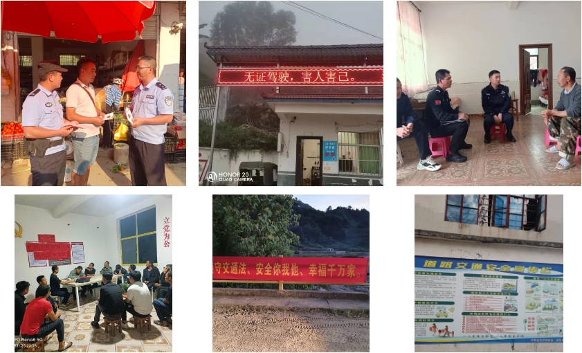加强安全警示,确保宣传引导到位 积极组织开展交通安全宣传教育提升行动,增强农村群众驾驶人安全意识。组织集中宣传。通过赶集日开展集中宣传、悬挂条幅、召开群众会议、道路交通安全警示会议等形式,提升群众交通安全防护意识,自觉摒弃“图方便”“不在乎”“无所谓”的心理和出行陋习,防止因一时疏忽造成意外交通事故发生。进村入户宣传。组织民辅警和相关站所人员深入农户家中开展宣传,讲解酒后驾驶、超员超载、无牌无证、三轮车农用车载人、驾驶摩托车不戴安全头盔等农村地区典型交通违法的严重危害性,提示出行注意事项,教育引导群众自觉抵制乘坐超员车、报废车及其他不符合安全标准车辆,确保出行安全。强化媒体宣传。依托媒体宣传阵地,通过微信公众号、应急广播、村村响、微信群等大力开展道路交通安全知识传播宣传,进一步增强广大农村群众安全文明出行的理念,打通宣传“最后一公里”,让文明出行的声音在村道、田间地头回响,全面增强广大群众的安全出行意识。