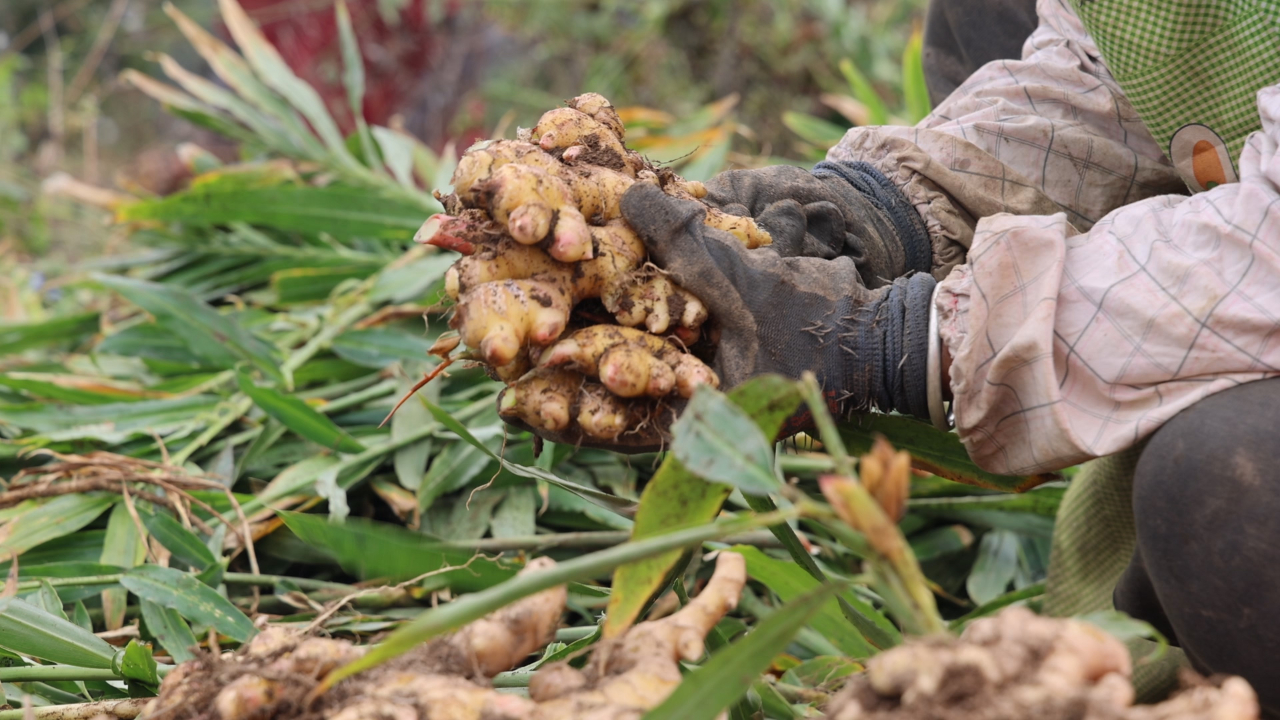 据生姜种植基地负责人介绍,基于牛孔镇独特的气候环境,种植出来的生姜个饱味浓、产量稳定,“姜”来可期。同时,生姜种植从播种、培土、除草、采收,都需要投入大量劳动力,直接带动了不少当地村民乃至周边村民就近就业增收,眼下,正值生姜采收期,在基地里务工的平均每天20个人。