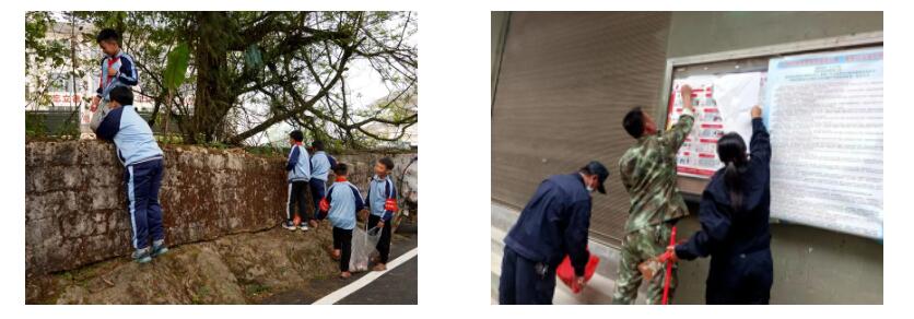 “三个推进”共发力。推进“小红帽”健康行动,赶集天由“村两委”带头,派出2名党员或群众参与卫生督导、交通整治等工作;推进干部职工饭后“半小时”健康行动,到划分的区域进行卫生维护;推进国门小学“护卫小红帽”行动,少先队员们利用课余时间在社区和学校周边开展卫生清扫活动,积极响应创建国家级卫生乡镇的号召,培养青少年讲文明树新风。氛围营造树导向。利用好交通要道、人员集中的区域重点打造6个创卫氛围营造场景,全面宣传创卫工作,以视角冲击的形式提高创卫知晓率;设置健康宣传栏20个、分类标准化垃圾站40个,放置果皮箱50个,改造洗手台11个,并利用垃圾站、洗手台的空白区域,粘贴创卫小贴士,与健康宣传栏形成创卫知识的无缝衔接;以“国门平河”微信公众号为载体,通过文字、图片、视频等方式,对创卫工作进行宣传报道;结合赶集天“小红帽”健康行动,用小喇叭宣传创卫工作,实现创卫氛围营造形式多样,群众讲文明树新风众创卫的格局蔚然成风。
