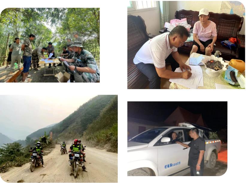全员参与,包保清晰,构建防汛“防护栏” 针对本轮强降雨,镇、村、组党员干部冲锋在前、履职尽责,迅速深入到各自包保农户家里开展“汛期群众常态化转移结对书、防汛度汛承诺书、房屋安全隐患告知书、防汛减灾知识宣传书”等“四书”的宣讲签订,以及防汛减灾的知识宣传工作,提升广大人民群众的生命意识、防范意识,做到提前知晓、提前防范、提前转移避险。同时,党政军警民指挥中心加强对有安全隐患的低洼地带、重要路段、滑坡体等进行“拉网式”排查、巡逻,做到问题早发现、早处置。