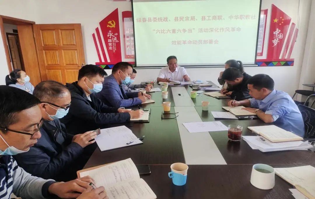 10月23日,县委统战部、县民宗局、县工商联、县中华职教社召开“六比六重六争当”活动深化作风革命效能革命动员部署会,县委常委、县委统战部部长卢光荣及全县统战系统单位的干部职工参加会议。