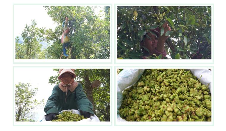 林间隐约可见村民采收八角的忙碌身影,他们有的踩着梯子、有的拿着树枝,还有的直接爬到树上采摘八角……不一会,村民们的袋子便被清香的八角装的鼓鼓囊囊,个个都高兴得合不拢嘴。