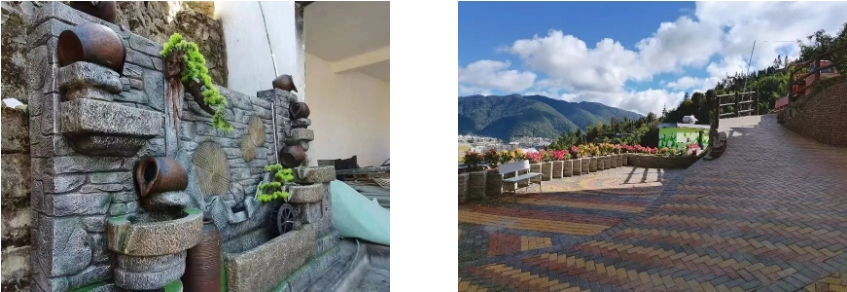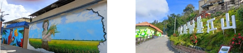 产业发展求振兴,文旅相济促交流。松东村积极响应“一县一业”茶产业发展战略,充分利用村内万亩茶园资源,坚持产旅融合发展理念,改造提升茶叶1000亩,引进实体企业与茶农合作,提高茶产品的产量和品位,推出了“松东壹号”散茶、饼茶、小片茶。打造松东电子商务平台村级联络点,茶叶、红米、八角、草果等农产品实现直播带货销售,结合线上线下拓宽销售渠道,产品销往广东、湖北、黑龙江、吉林、辽宁等地。在房前屋后实施“微景观、微花园、微菜园、微果园”“四微工程”,重塑“开门望景、凭栏赏花、进园浇菜、入院探果”的乡愁记忆,建设“看得见青山、望得见绿水、记得住乡愁”的美丽乡村。融合森林、村寨、梯田、水系等元素,全面打造村庄,充分展现中华文化符号和中华民族形象本土化元素的时代内涵。创作村庄logo图案,打造村庄水景观和人马驿道墙画,诠释水元素在传统文化中的地位,展示古老马帮文化、农耕文化、刺绣文化等。深挖当地民间故事《妥底玛依之歌》中“兄妹锄暴安良,追求幸福生活”的感人情节,赋予妥底玛依花(当地一种白杜鹃花)以民族团结进步深意,并创作图案进行雕刻装饰展示,展现中华民族形象本土化元素。松东村凭其地理区位、自然景观、古茶文化、农耕文化等优势,成为了一个县域打卡网红点,促进了各族人民的交往交流交融。