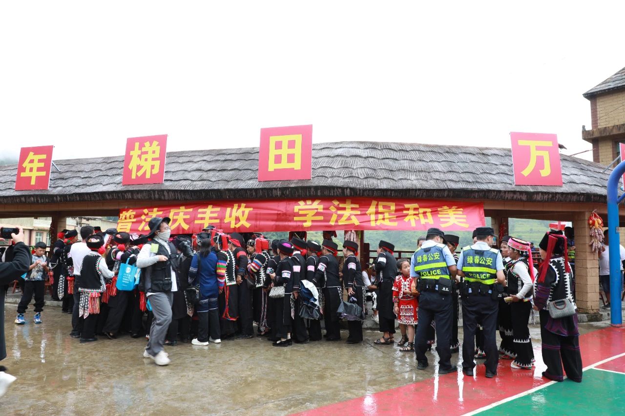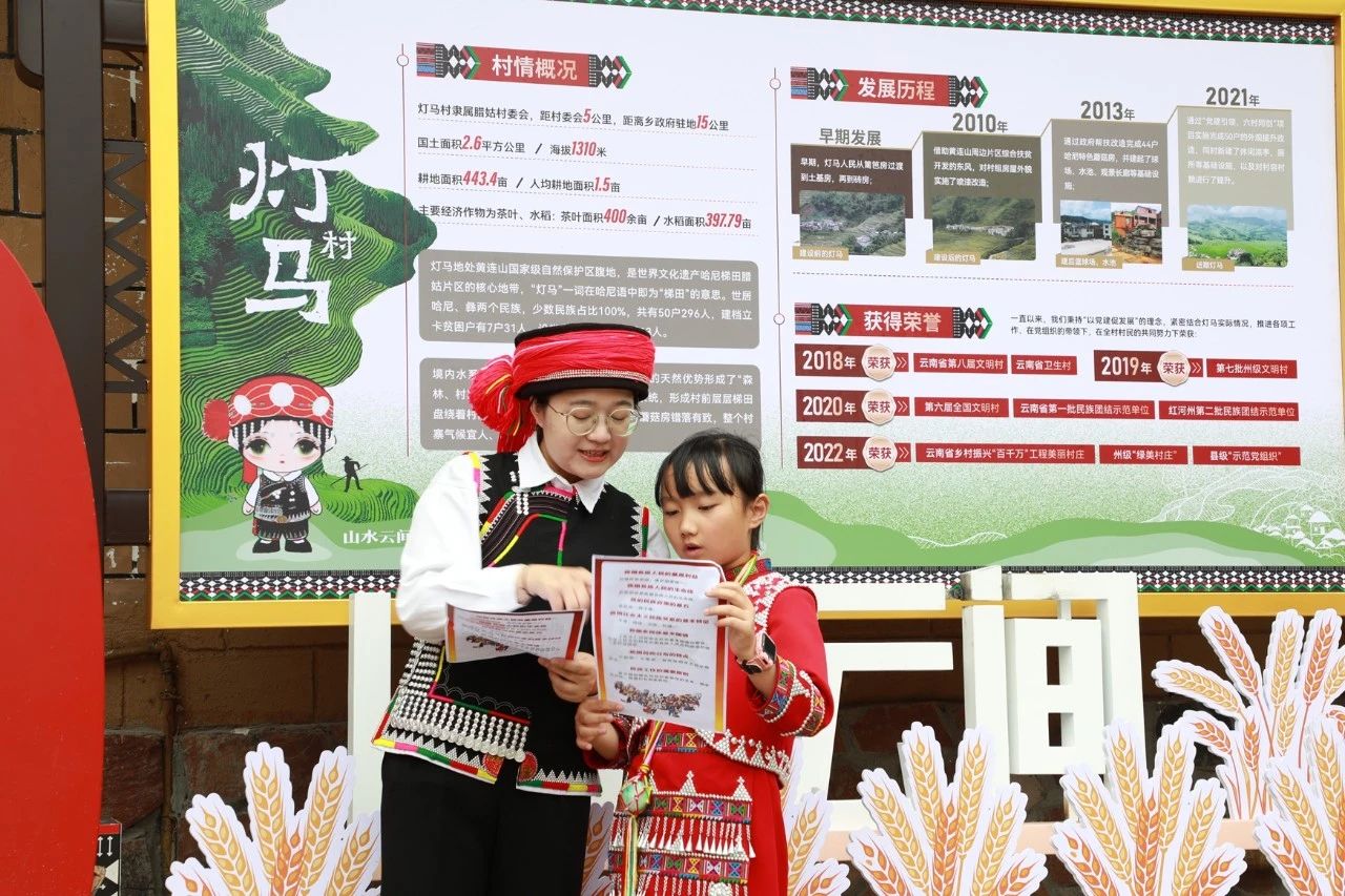 腊姑梯田景区灯马片区依托黄连山国家级自然保护区腹地,得天独厚的天然优势,形成了森林、村寨、梯田、水系,四素同构农业生态系统,构成一幅美丽的画卷。近年来,灯马村在民族团结方面还取得了突出的成绩,先后荣获“国家级文明村”“省级文明村”“省级民族团结示范村”,当地村民将民族共同体意识融入群众生活,共建美丽家园。秋风吹过田野,村前层层梯田弥漫着丰收的气息,各方宾客欢聚一堂,共享丰收的喜悦,共话民族团结情。