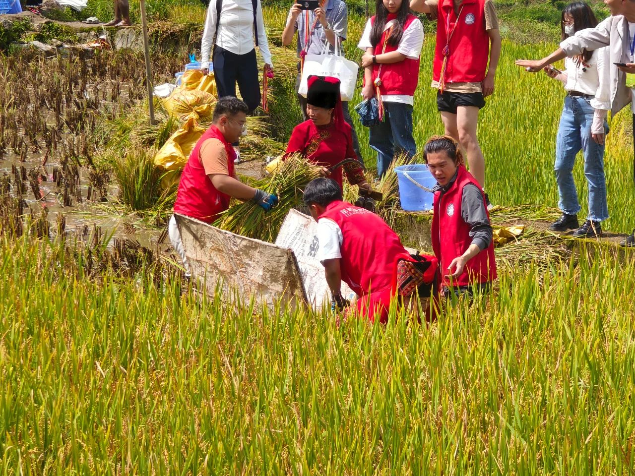 随后,组织大家参与精心设置的各类游戏,在欢声笑语中团结合作,收获喜悦,共话丰收,同迎佳节。走进稻田,让宾客体验农耕的乐趣,认识稻田农耕的器具,学习打谷子。品味稻米,用心感受大自然的恩赐,共享梯田生态特色美食,米香浓郁、口感软糯的梯田红米。