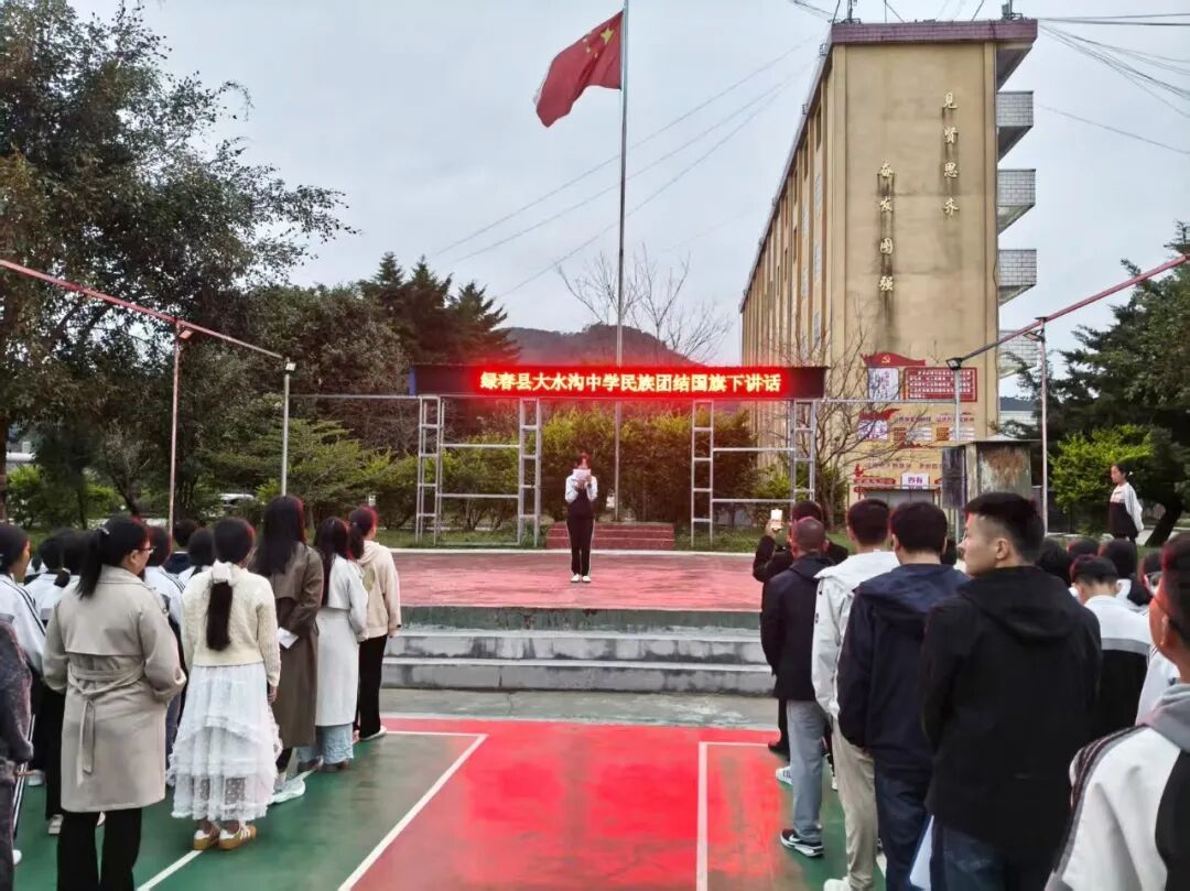 绿春县大水沟中学是一所多民族汇聚的农村寄宿制初级中学。学校始终坚持以铸牢中华民族共同体意识为主线,将民族团结进步教育融入教育教学、校园文化、课后服务等各环节,逐步形成“以德立校、文化润心、多元共融”的创建特色。