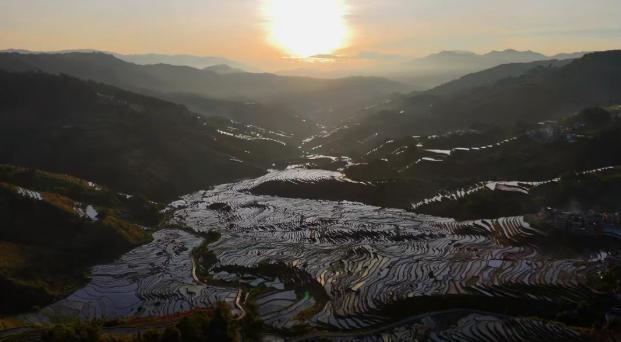 当朝暾跃上云崖,腊姑梯田在光影交响中绽露真容——它是哺育世代的膏腴之地,更是令世人屏息的诗意栖居。